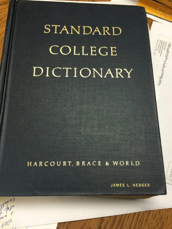 Upon closer inspection, the cover read Standard College Dictionary with the name “James Hedges” pressed into the lower right hand corner. This was odd. Dr. Hedges was the chair of the English department I now teach in when I was an undergrad, but he retired well before I was hired back as a professor.****